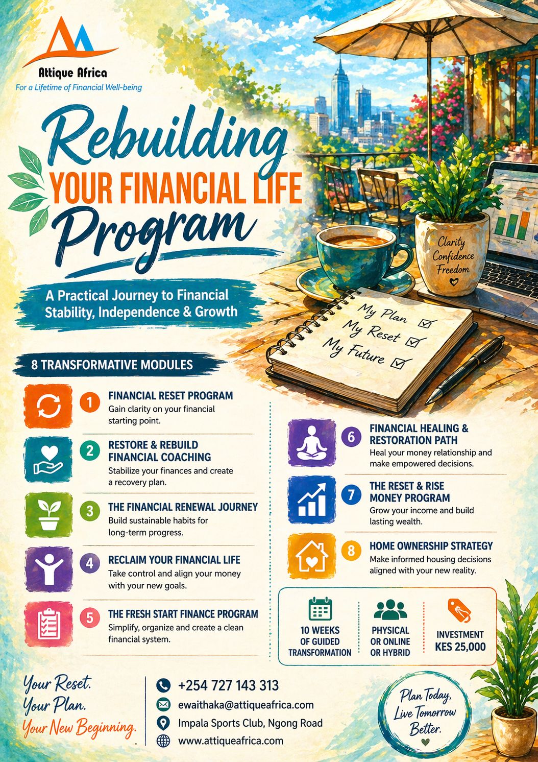 | Week/ Session 6 | Financial Healing & Restoration Path | Money decisions are often influenced by emotions—especially after major life changes. This module focuses on rebuilding your relationship with money so that your decisions are driven by clarity, not fear or stress.